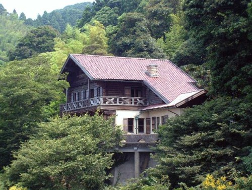 北前五大船主・右近家の別荘として、昭和10年に完成。1階外観はクリーム色の壁で仕上げたスパニッシュ様式、2階外観はスイスのシャレー(山小屋)風に仕上げられている。内部も各所にモダンな趣向が見られ、当時の当主のこだわりが窺える。