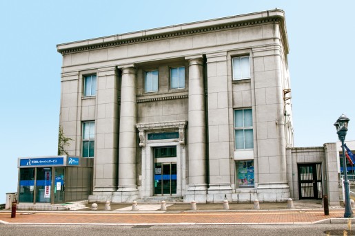 下関側の銀行街に建てられた、画期的な免震基礎を持つ旧不動貯金銀行下関支店。鉄筋コンクリート3階建。昭和9年(1934)竣工。