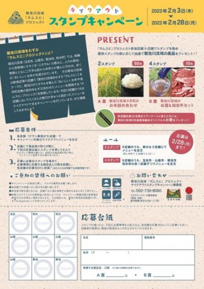 ※チラシ兼応募台紙は9店舗のほか、玉名市、山鹿市、菊池市、和水町の物産館等に配置しています。