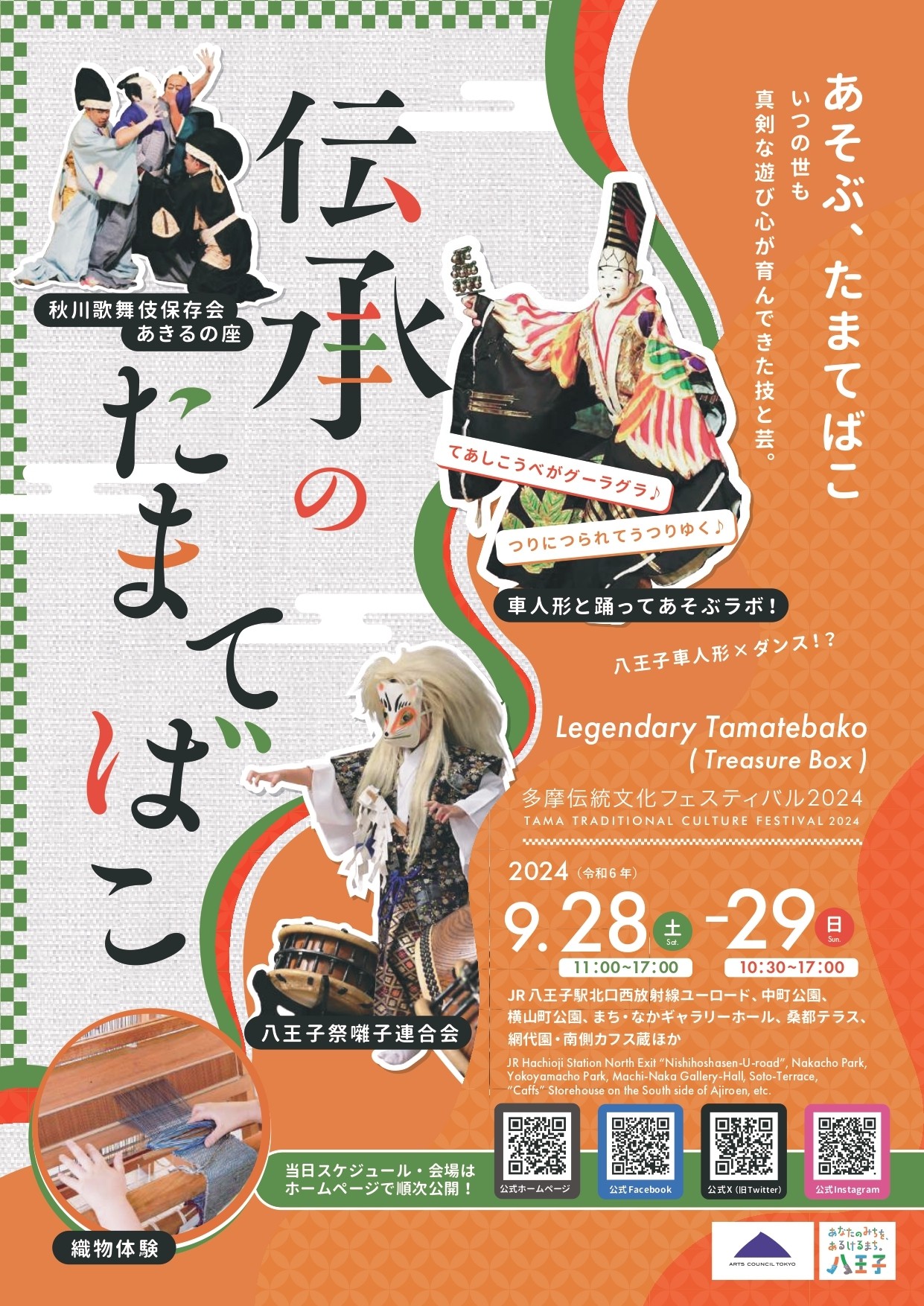 八王子車人形や八王子芸妓衆による屋外ステージでの公演や多摩織の展示など、日本遺産に関連したプログラムも実施されます。詳しくは、「伝承のたまてばこ~多摩伝統文化フェスティバル2024〜」の公式ホームページをご覧ください。