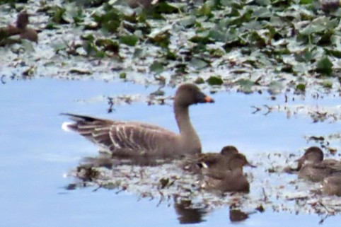 ヒシクイ(亜種ヒシクイ)1羽がカモとともに福島潟で過ごしているところを、水の駅「ビュー福島潟」のレンジャーが確認しました。これが今シーズンの初記録となります。初雁飛来としては昨年の10月3日(マガン、オオヒシクイ)より5 日早い記録となりました。