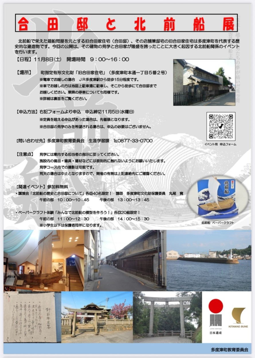 【多度津町】合田邸と北前船展開催のお知らせ