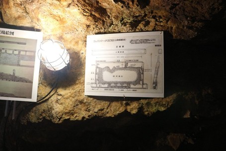 少し歩くと、江戸時代に掘り進められた跡の展示がありました。人が四つん這いになってスレスレ通れるほど細い掘り跡です。