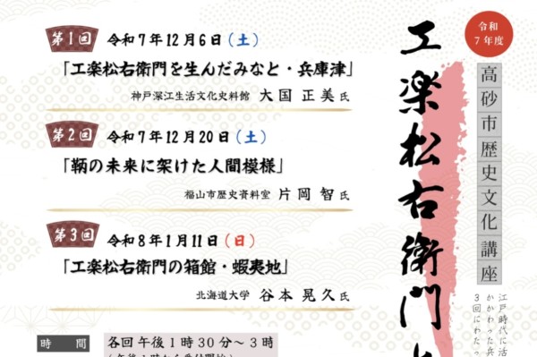 【高砂市】歴史文化講座「工楽松右衛門と高砂」のご案内