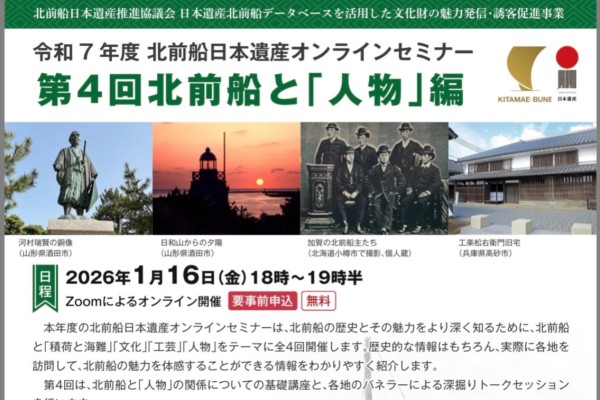 令和7年度第4回北前船日本遺産オンラインセミナーの内容が決まりましたのでご案内させていただきます