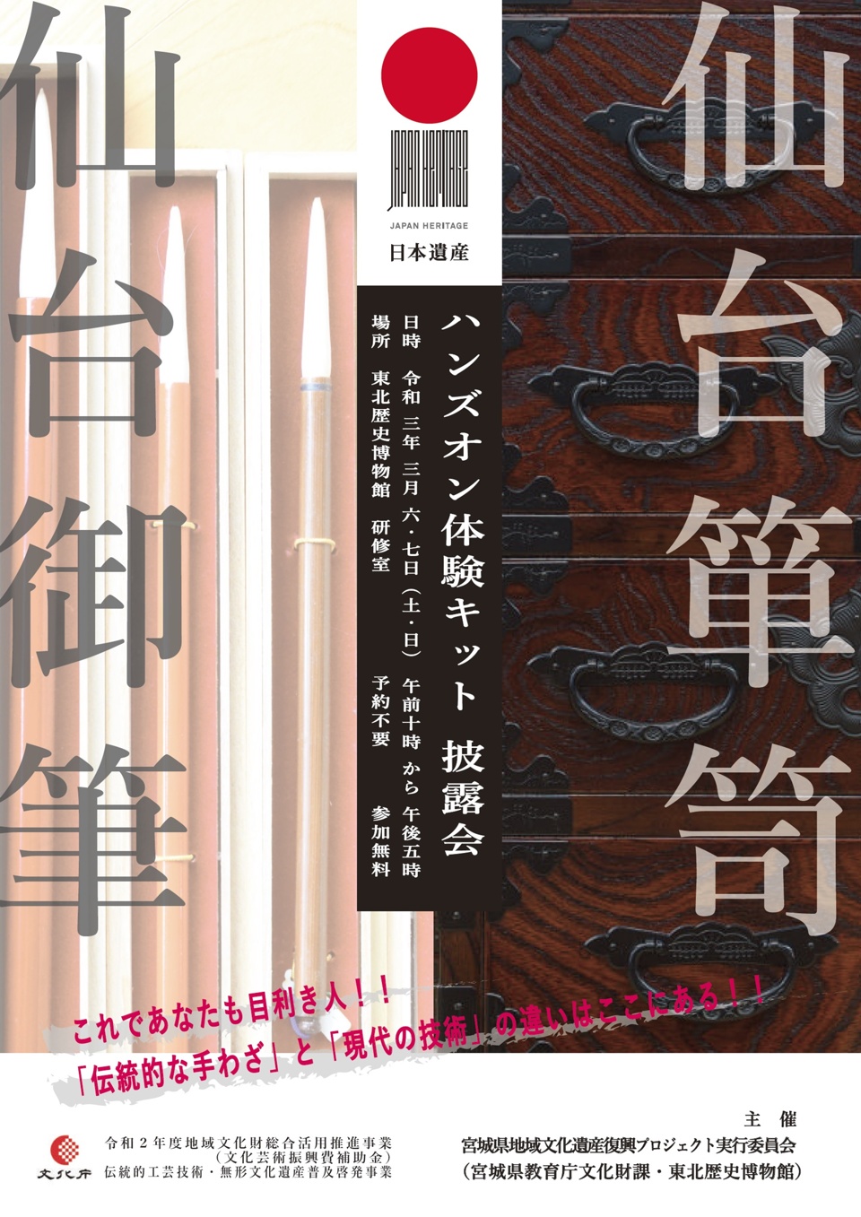 構成文化財・仙台箪笥、仙台御筆の伝統工芸技術を体験しながら学べるハンズオン体験キットが完成しました。来年度の本格運用に先立ち特別公開いたします!