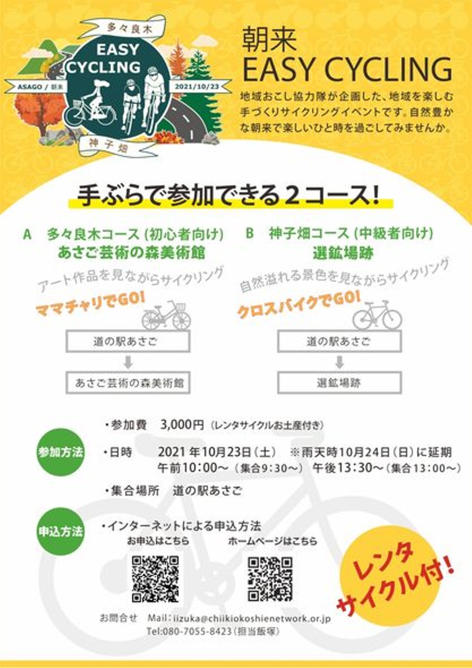 ●参加費 3,000円(レンタサイクルお土産付き)