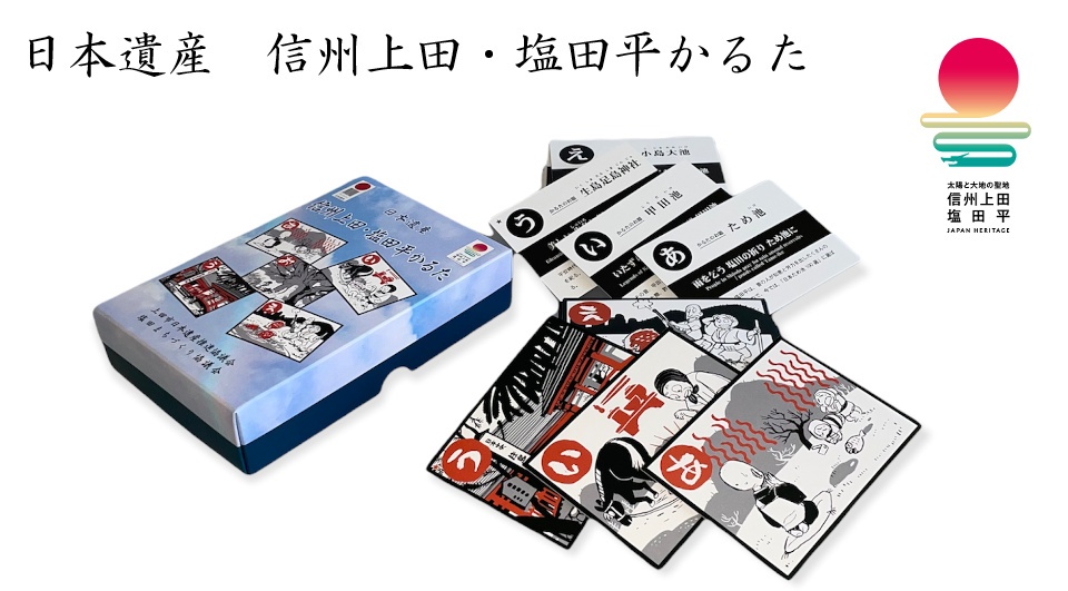 上田市の日本遺産構成文化財や、認定ストーリーの構成要素のもととなった民話などを知っていただくため、かるた及びマップを制作しました。