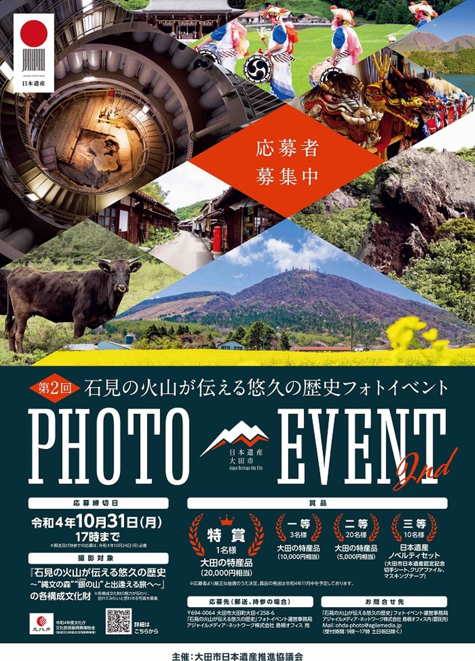 令和2年6月に日本遺産認定を受けた『石見の火山が伝える悠久の歴史~”縄文の森””銀の山”と出逢える旅へ~』の構成文化財に関する魅力ある写真を募集します。