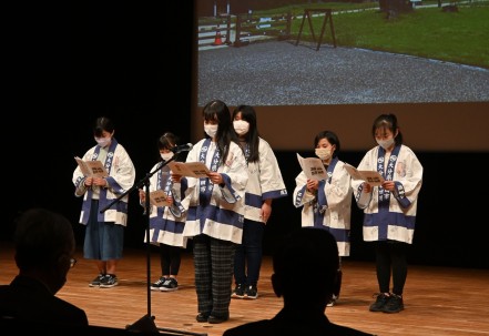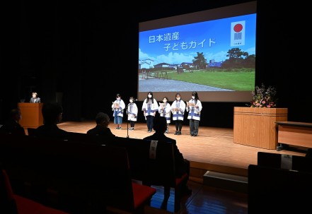 令和5年2月23日(木・祝)、日田市民文化会館(パトリア日田)小ホールで開催された令和4年度「咸宜園の日」記念事業の開会前に日本遺産子どもガイドが発表を行いました。