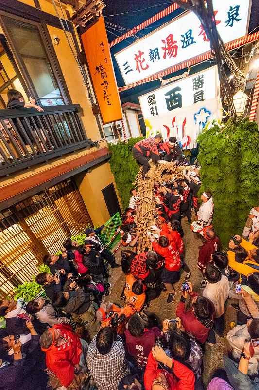 また、国指定無形民俗文化財「三朝のジンショ(同日:花湯祭り)」は、5月3日(水)に“綱からみ”と呼ばれる大綱の作成が行われ、翌4日(木)のメインイベントとして“大綱引き”が開催されます。“藤かずら”だけで編み上げられる大綱は、全長160m、重さ4tにも及び、「オイサ!」のかけ声と共に巨大な綱が東へ西へと動きます。東が勝てば豊作、西が勝てば商売繁盛といわれる綱引き、皆さんはどちらを応援しますか?