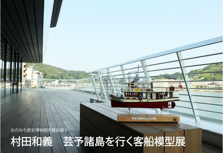 因島出身の村田和義氏(昭和14年(1939)~平成26年(2014))は、しまなみ海道が開通する以前、尾道ー土生ー今治の間を結んでいた客船に魅せられ、写真や自身の記憶を頼りに木造の模型を製作しました。