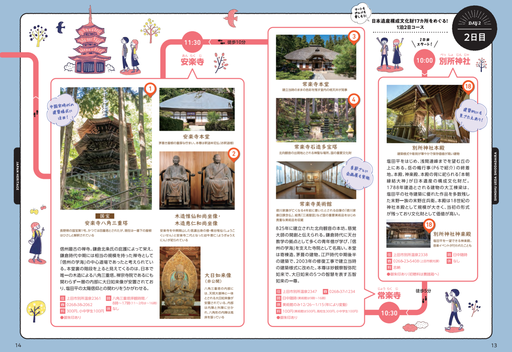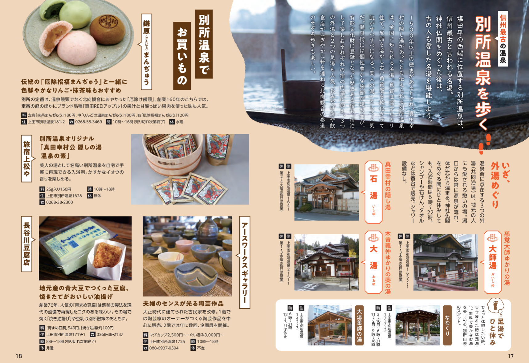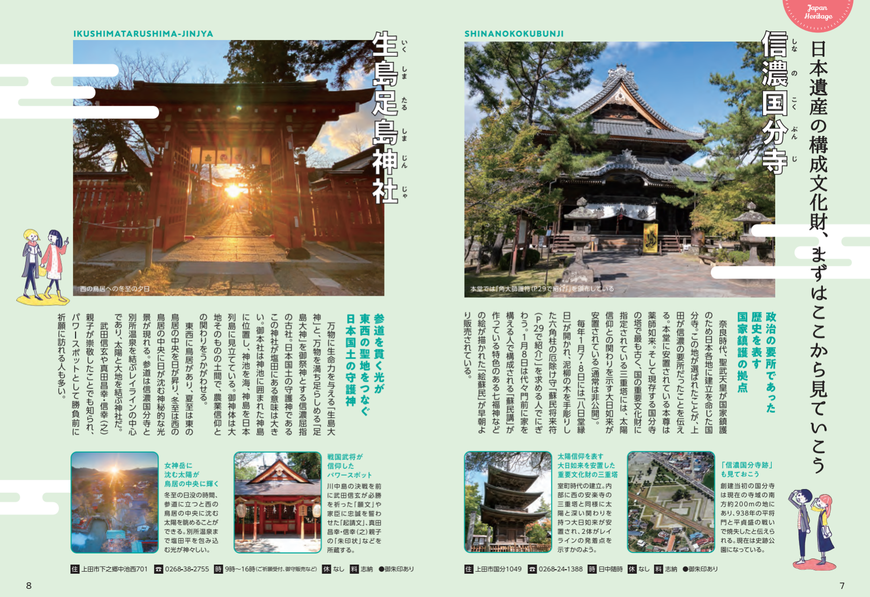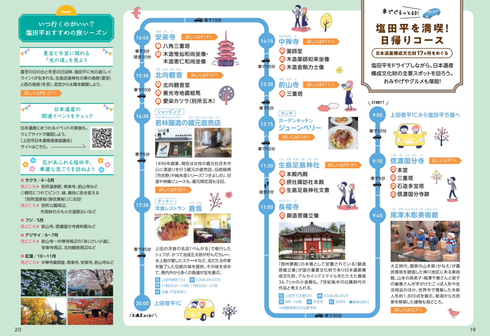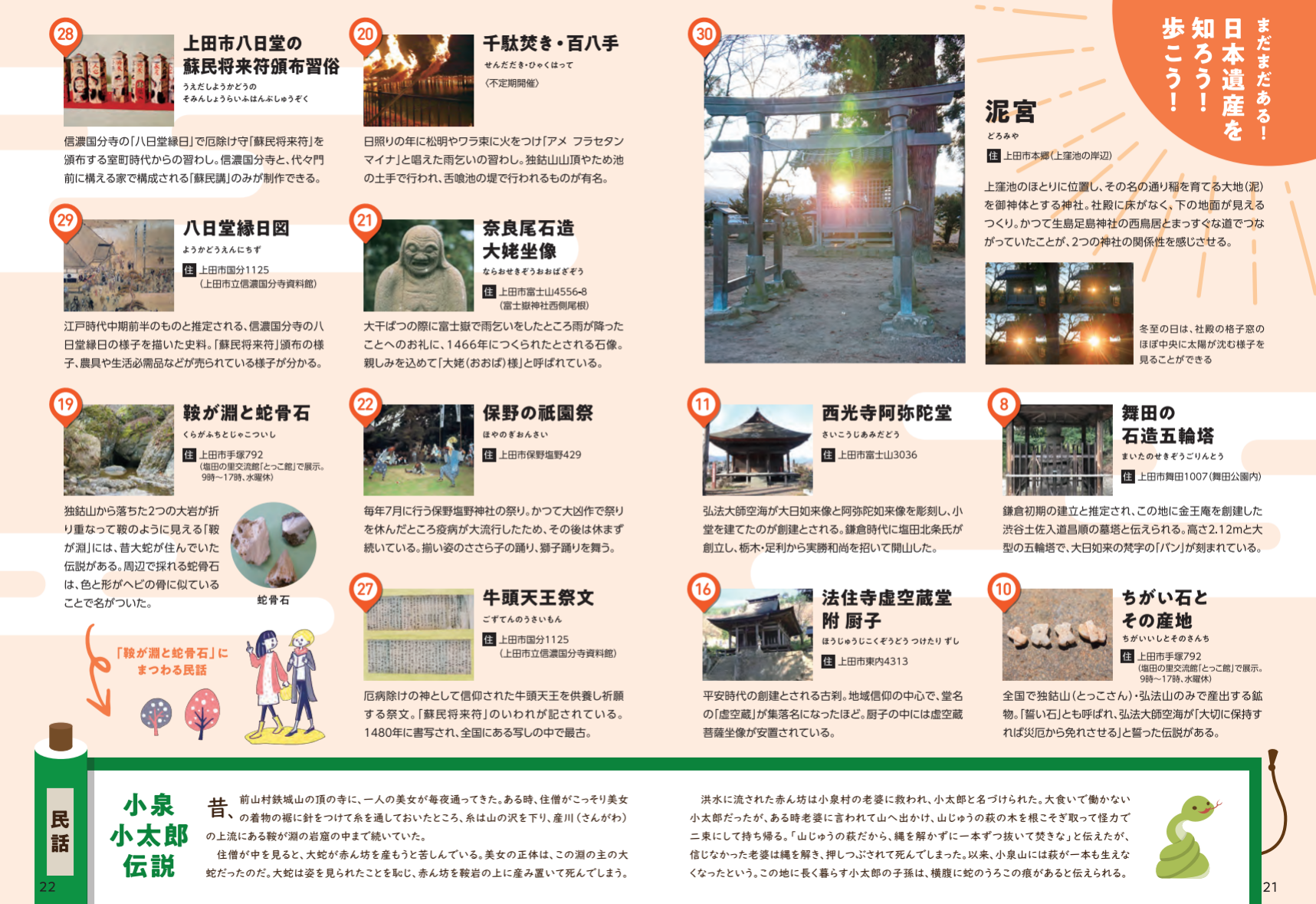 日本遺産認定ストーリーやその構成文化財、観光スポットやモデルコース、グルメ、土産情報など、長野県上田市の日本遺産を満喫するための総合的な観光情報を1冊にまとめた観光パンフレットです。