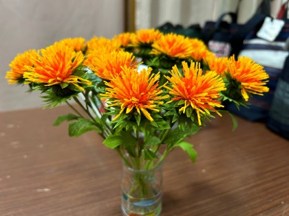 「山寺と紅花」のブースでは、パンフレット配布や物販のほか、紅花のペーパーフラワー作りを行います!(1本100円です)