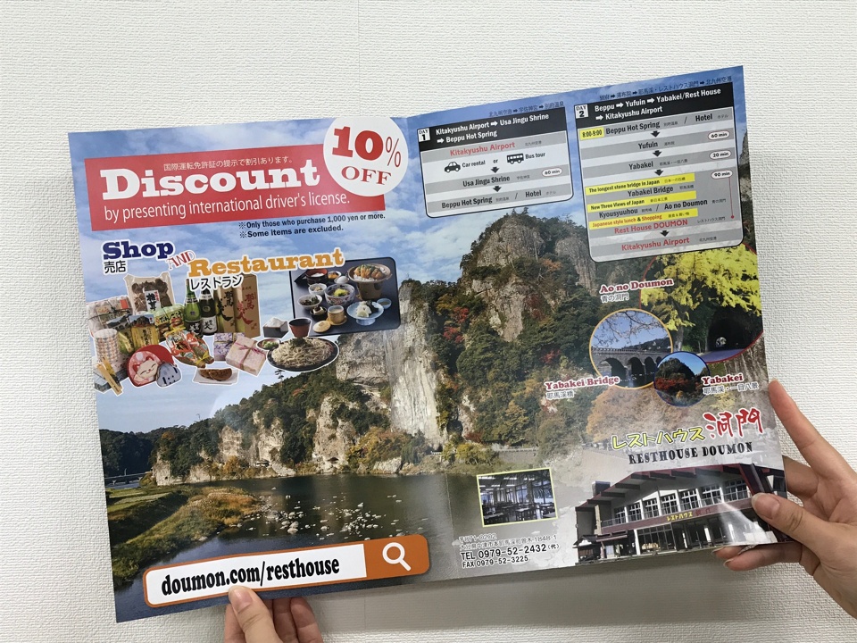 台湾便就航を記念して、レストハウス洞門で「国際運転免許証」を提示すれば、なんと売店&レストランが10%オフ!!!