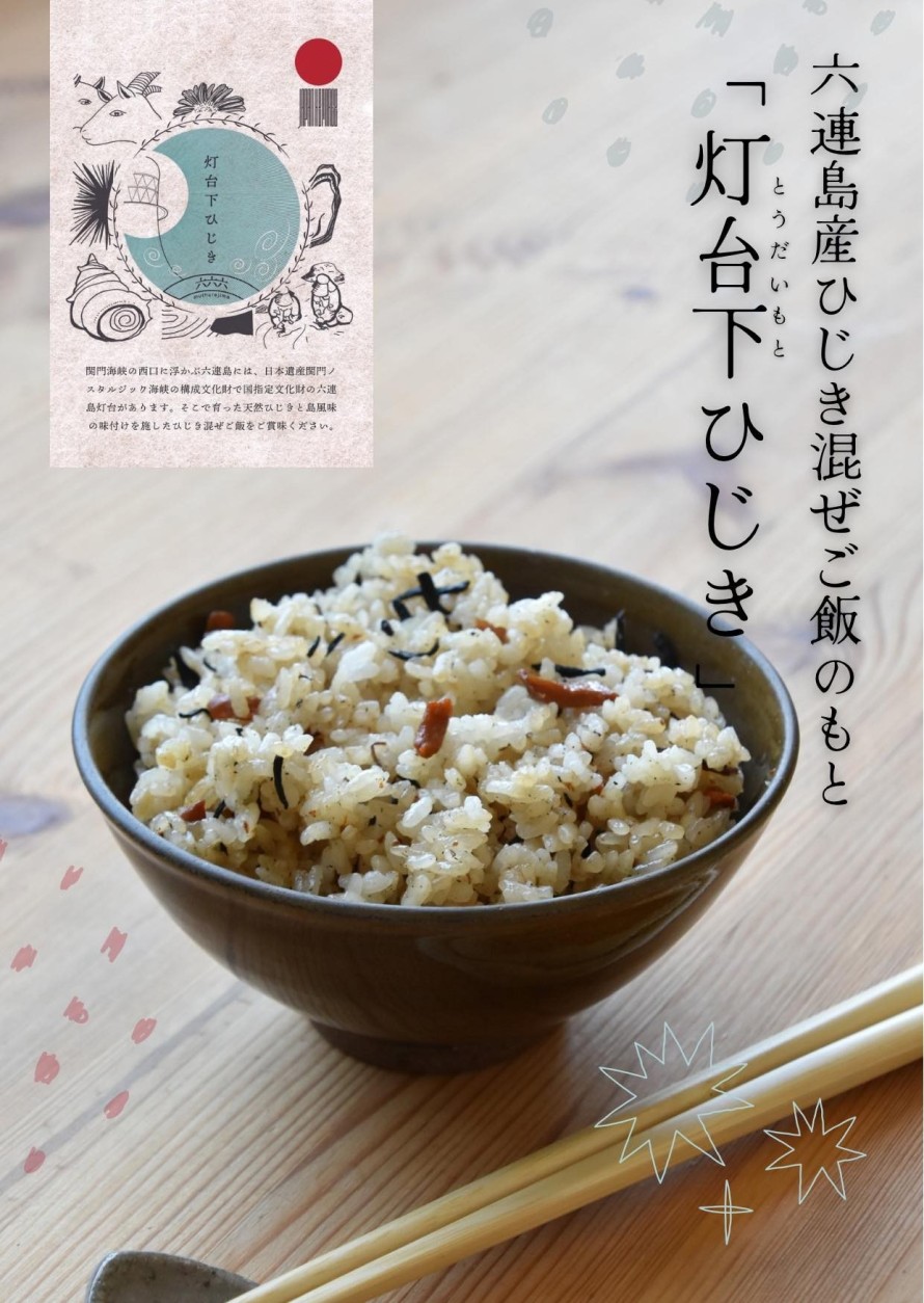 六連島産ひじきを使ったひじき混ぜご飯のもとをご紹介します。