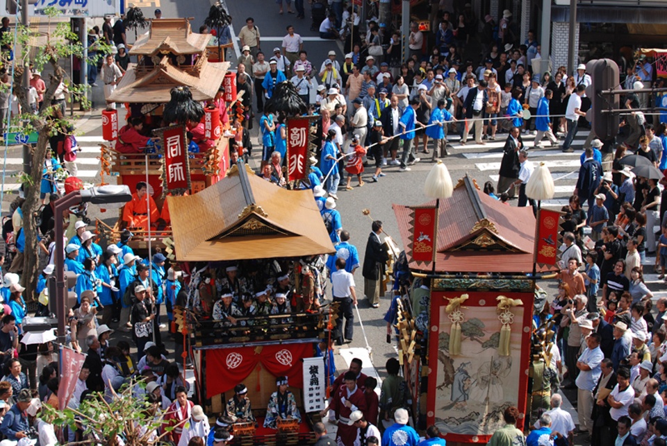 海と都をつないだ鯖街道起点のまちに繰り広げられる京都祇園祭礼の影響を受けた絢爛豪華な秋祭り。山車、棒振り大太鼓、神楽、獅子舞など多彩な出し物が雅な囃子をともなって、日本海側最大の港町・小浜西組重伝建地区を中心に催行されます。