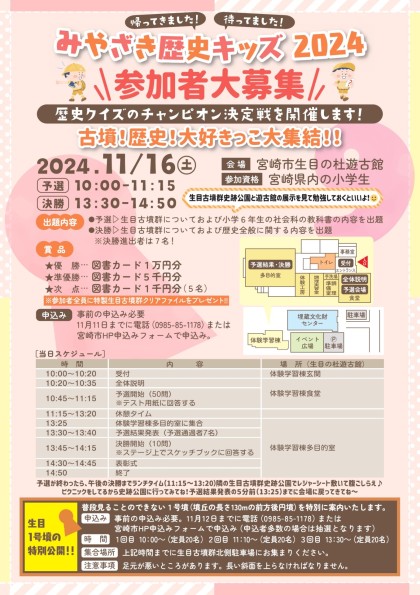 豪華賞品が用意されている歴史クイズのチャンピオン決定戦「みやざき歴史キッズ2024」