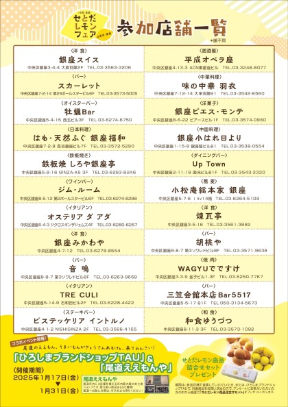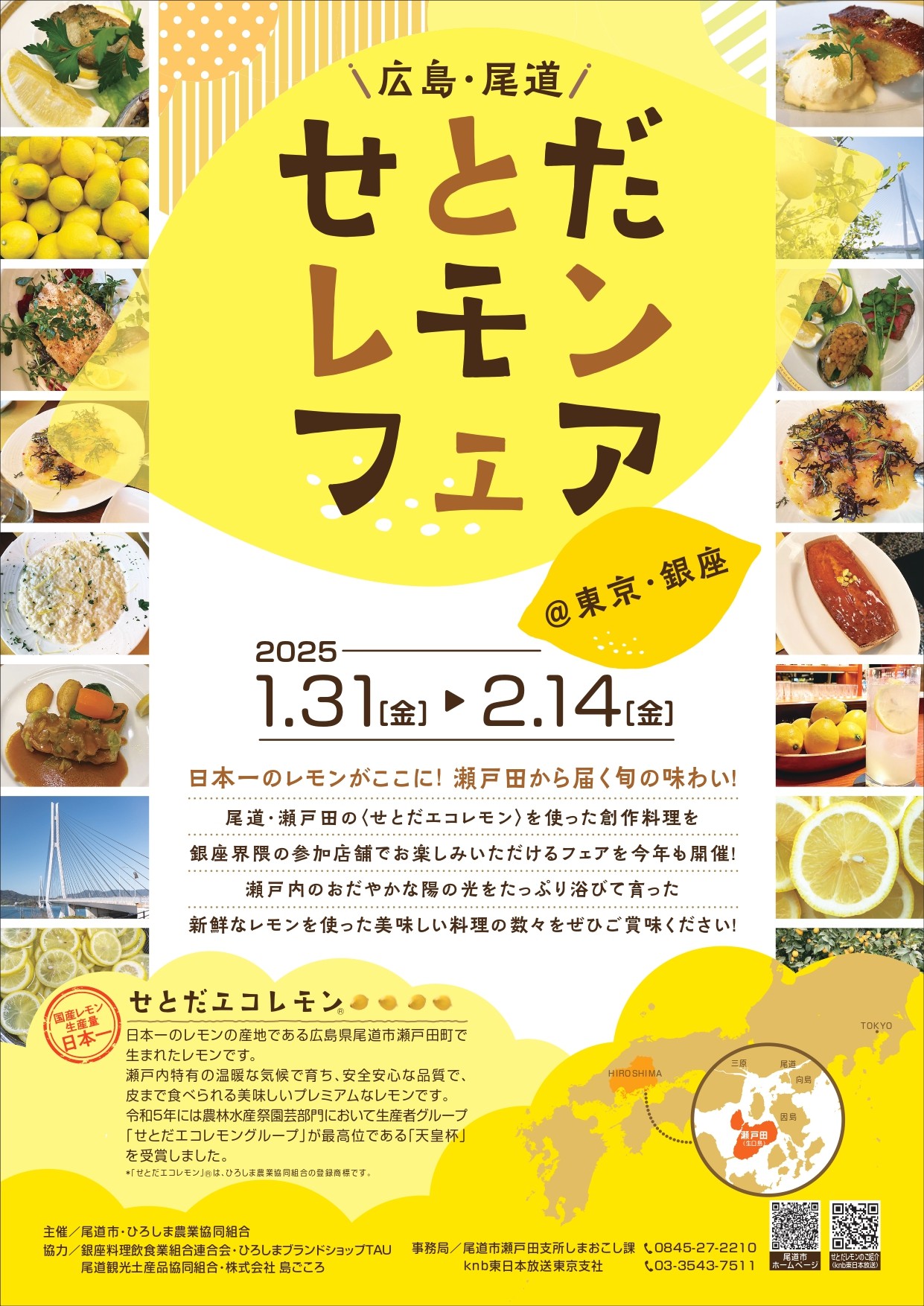 国産レモン発祥の地・尾道市瀬戸田町のブランドレモン「せとだエコレモン®」を使い、銀座料理飲食業組合連合会加盟店のうち22店舗で、期間限定の創作料理が提供されます✨