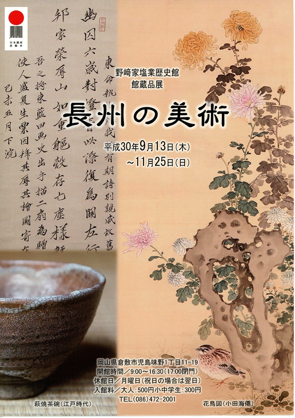 国指定重要文化財・日本遺産構成文化財の旧野﨑家住宅で、野﨑家塩業歴史館 館蔵品展「長州の美術」が行われています。ぜひご覧くださいね!