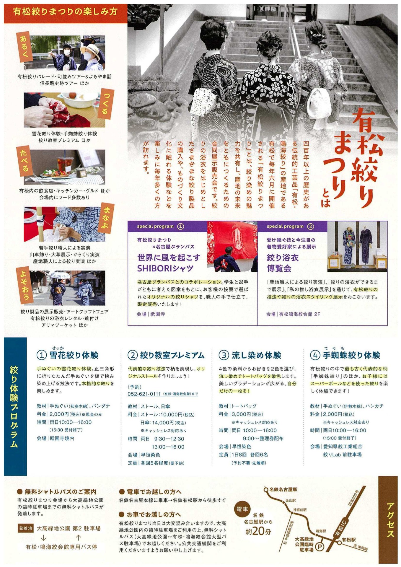 主な内容:有松絞りまつりx名古屋グランパス〜世界に風を起こすSHIBORIシャツ〜