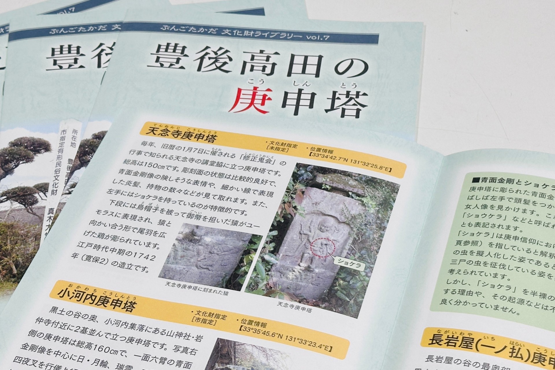 パンフレットでは、真木古代公園の庚申塔をはじめ、豊後高田市に所在する庚申塔から特徴的な庚申塔15ヶ基について紹介・解説しています。