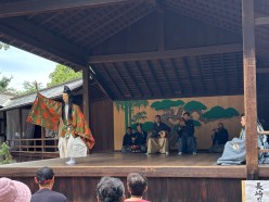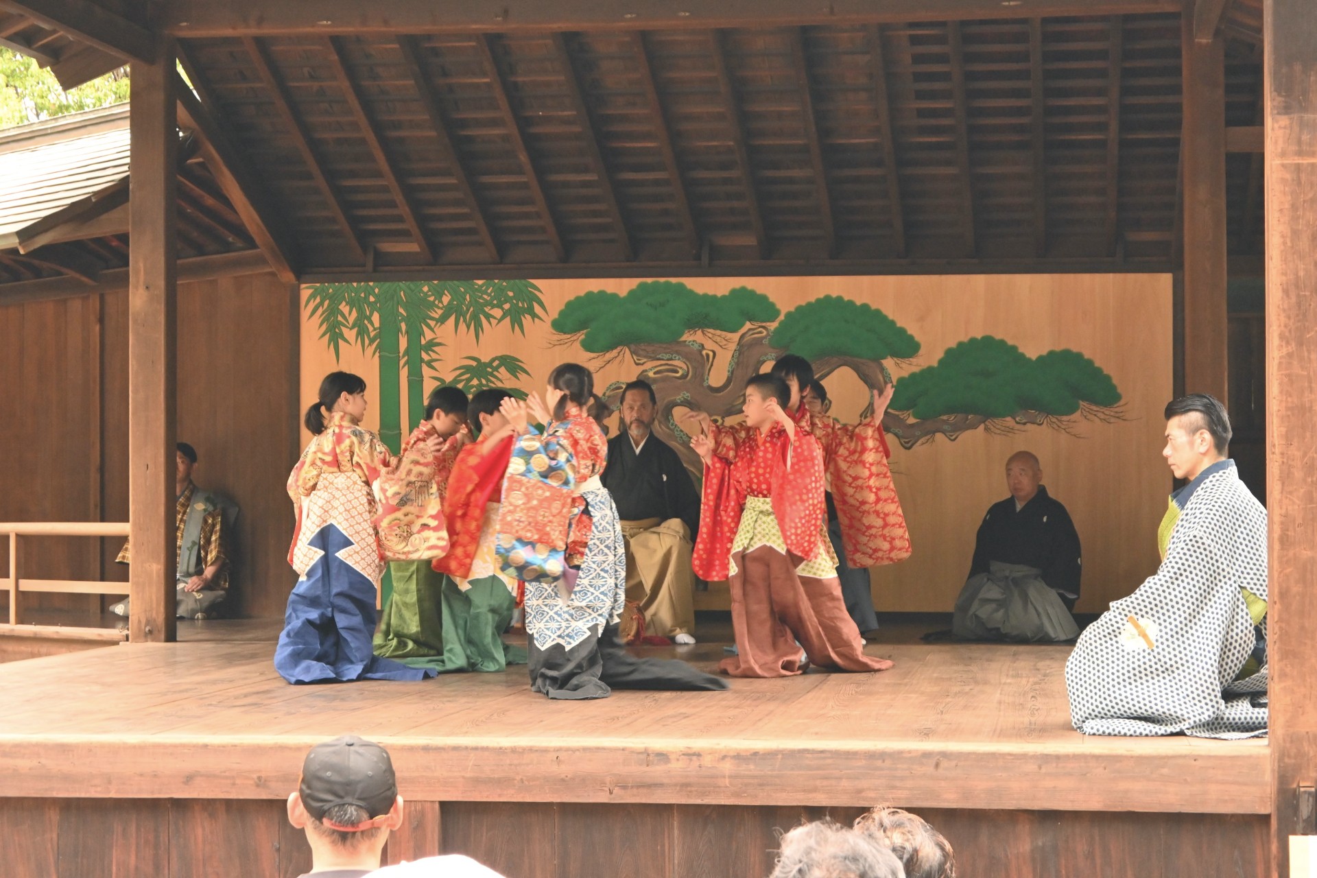 町内の方々の協力で舞台が整えられ、天気予報を覆して奇跡的な曇り空の中での上演となりました。能の舞台で物語に新たな命を吹き込まれ、沼名前神社能舞台で時を超えて受け継がれる想いのこもったすばらしい公演でした。