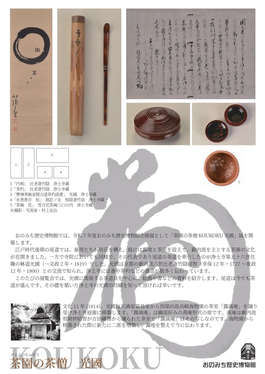おのみち歴史博物館にて、令和7年度企画展Ⅱ「茶園の茶僧 KOUKOKU 光國」を開催します。
