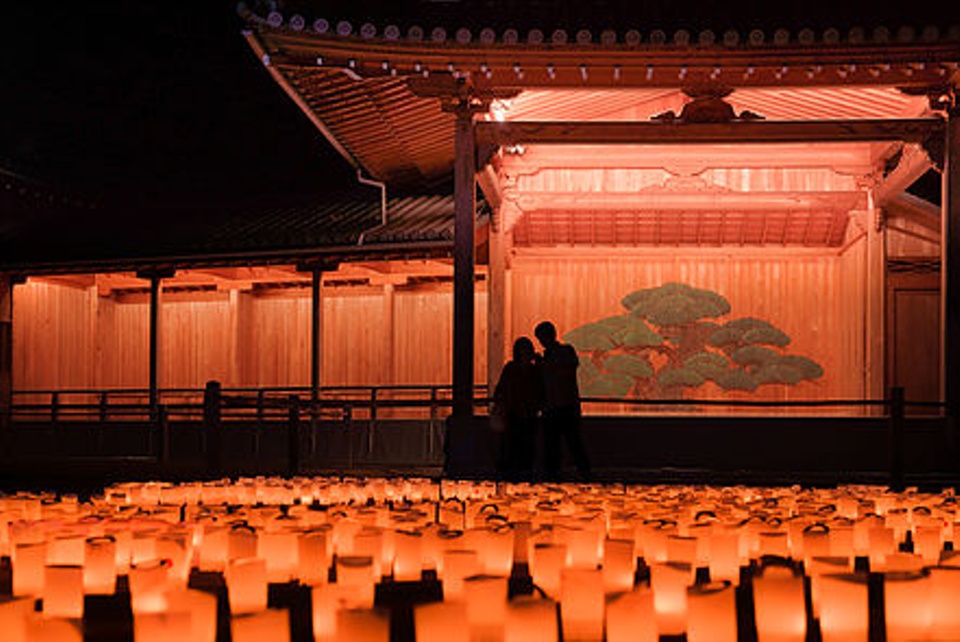 町全体の路地キャンドル、建物ライトアップ、感動を呼ぶ灯りの会場、響くジャズなど