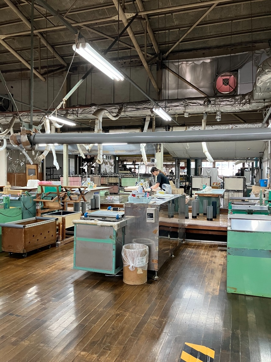 西田さん:ちりめんの技術は、現在も引き継がれています。加工場の中をご案内しますね。