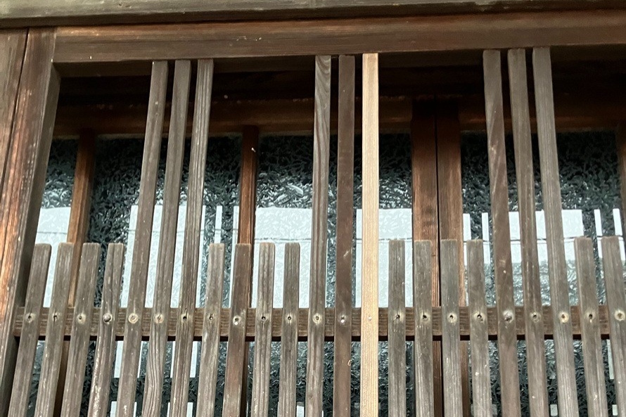 青木さん:そして各家の格子の数で、その家がどのような仕事を担っていたかも分かります。例えば2本は呉服屋さん、3本は糸屋、4本は機屋というように。そしてこのお宅は、“丹”の字が格子で表現されているこだわりよう。町の作りがすべて、丹後ちりめんという繊維産業に紐づいていますよね。とはいえ現在は業種も変わっているので、意匠的な役割として残っています。