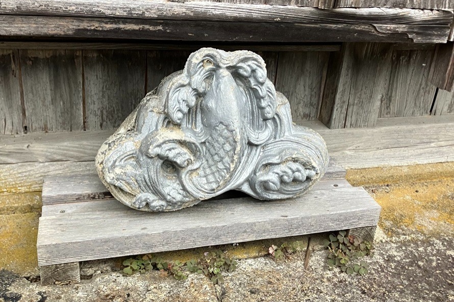 青木さん:この家は、水玉のモチーフを塀に使っています。あちらの家は、鯉のモチーフを使っていますよね、これは火事をよせつけないためのお守りの意味が込められています。桃のモチーフは、古事記に記されていた雷よけを模したもの。落雷で織機が壊れないことを願い、桃のモチーフを使っています。
