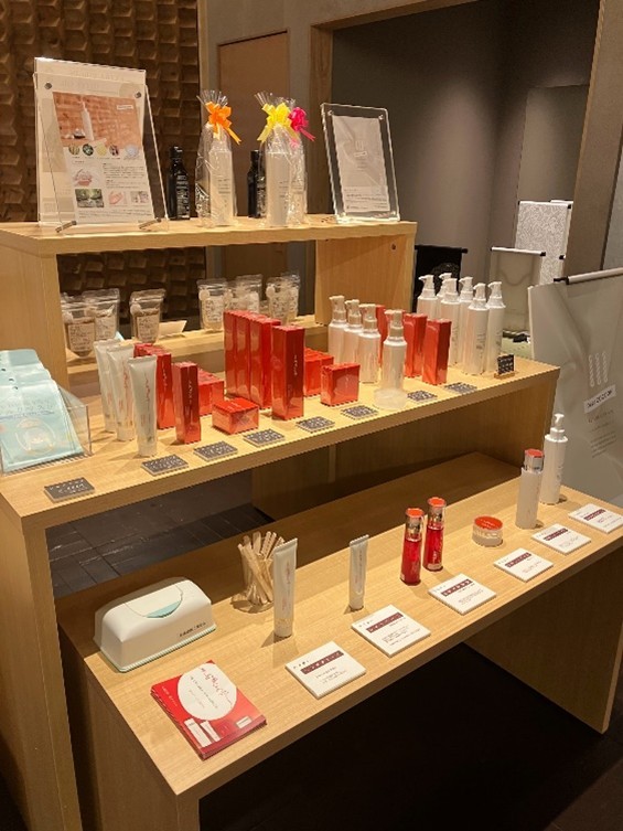 新しい試みは、TANGO OPEN CENTERでも行なわれています。たとえば、反物を精練する時に洗い流される“セリシン”という生糸の成分を活用する動きです。1kgの生機を洗い流すと反物として残るのは750gですが、流れ出た成分のうち約4分の1がセリシンです。これまでは廃棄されていたセリシンの中に、高い保湿性成分が含まれていることが発見されました。その成分を化粧品に配合して活用することで、SDGsとしての意義を創出しています。