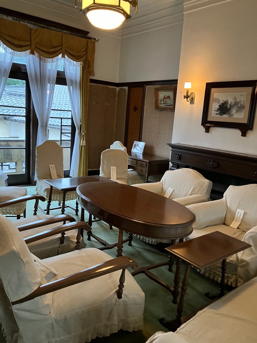 部屋に足を踏み入れると、応接室に西洋絵画、当時は珍しいベッドも揃うモダンな空間。甲子園球場の設計を担った今林彦太郎が手掛け、2024年1月には国の重要文化財に指定されています。