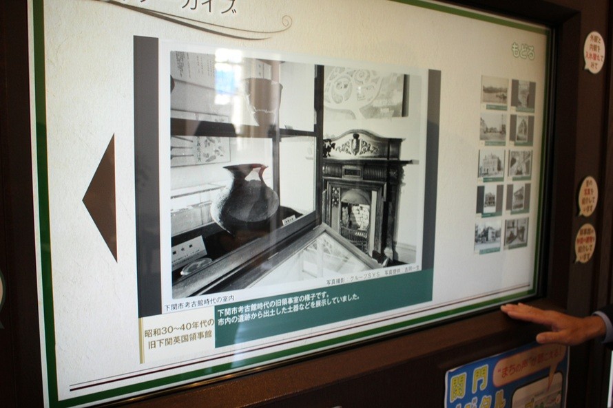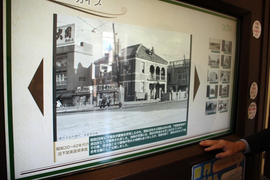 徳増さん:本館が建つ唐戸は、第二次世界大戦で空襲を受けたエリアです。多くの木造建築が焼き尽くされてしまいましたが、レンガや鉄筋コンクリートで作られた近代建築は被害が最小限に抑えられました。戦後、日本が復興に向かう中で、これらの残された建築を取り壊してしまうのではなく活用していこうという声が挙がりました。この建物も、戦後に領事館が北九州市に移動し、領事館建物としての役割は終わってしまうのですが、1954年、下関市がイギリスから建物を当時300万円の値段で買い取ります。最初は警察の派出所として、次に考古館(博物館)として、少しずつ改装や補修工事を重ねながら利用されてきました。1980年代からは観光資源として、一般の方に建物を公開。市民ギャラリーや喫茶店などを設置し、多くの方に楽しんでいただけるようになりました。
