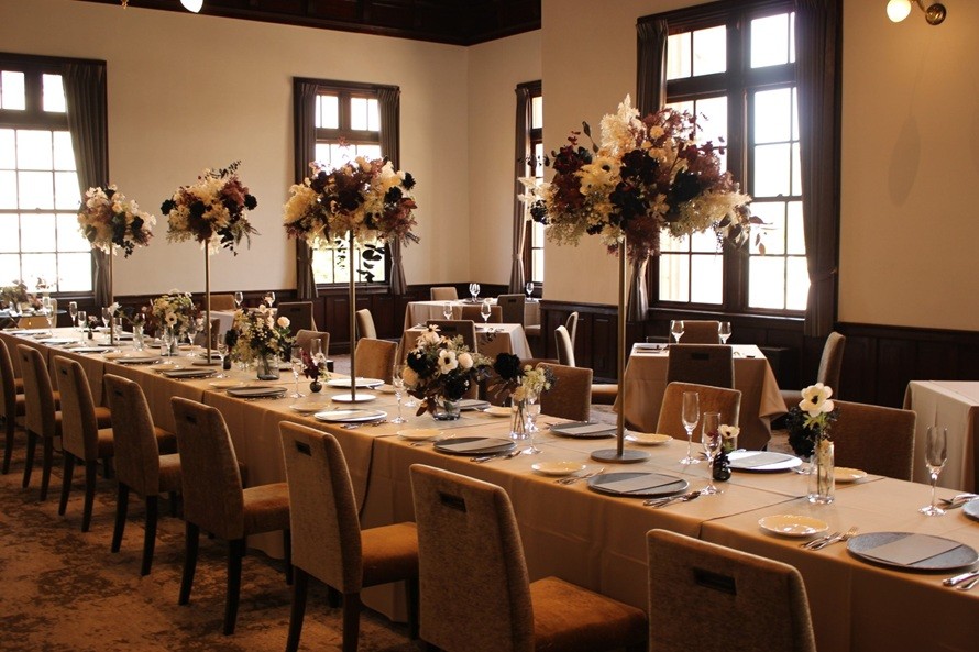 駅舎内で最も広いこの部屋は、駅の開業当初、みかど食堂という高級レストランがありました。現在はこの場所の雰囲気を活かして、ランチやパーティー会場として利用されています。また、当時のみかど食堂の様子がわかる資料が1階に展示されています。
