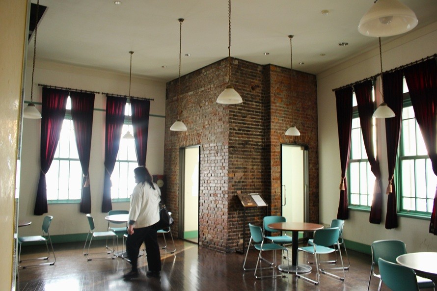 峰さん:その後、民間に売却されて倉庫として使用されていた時期に建物の壁や床が取り払われて、吹き抜けの広い空間ができました。平成に入ると再び市が建物を買い取り、改修や耐震補強などを実施。現在は市民の方々のための多目的ホールとして公開されています。