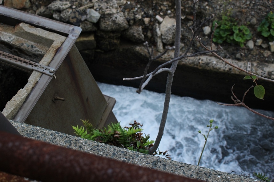 トンネルから出て、外を少し歩くいたところで「さて。トンネル内に溜まった排気ガスなどを換気する立坑の他に、トンネル湧水を排出するための水抜立坑をご案内しますね。」と言いながら、ドアを開けて中に入っていく川西さん。