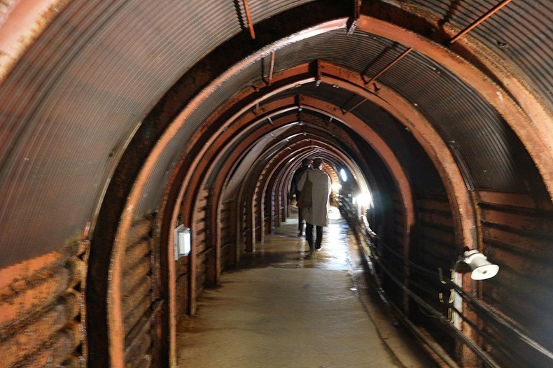 最下層にあたる15~18階層で、鉱石を運び出すために使われていた10tダンプトラックで、動力はディーゼルエンジン。排気ガスは500mもの垂直ダクトをつないで強制排気したということです。