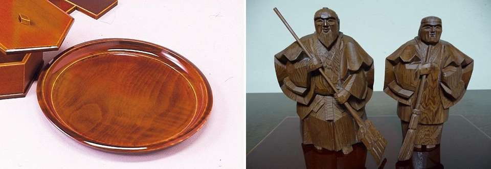 木の美しさを生かす技は、建築以外にも発揮された。400年前に高山で生まれた飛騨春慶は、江戸時代初期、打ち割った木の木目を生かすために透明な漆で盆に仕上げたことに始まる漆器で、透明で木地の木目が見える漆を用いるため、素材の見立て、加工から漆塗まで全てにわたって高い技術が要求される。宗猷寺には山中を移動しながら木地椀などを作った江戸時代中期以降に築かれた木地師の集団墓地が残されている。一位一刀彫は江戸時代後期、色彩を施さず、イチイの木が持つ木の美しさを生かした彫刻として完成された。これらの伝統工芸の技術や木工技術の粋を結集して作られたのが高山祭屋台である。