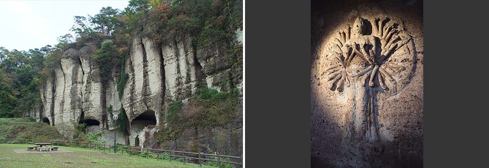 この大量の凝灰岩の岩山に目を付けた人々は、この地でこの石と共に暮らしてきた。古くは、縄文時代に岩山の洞穴を住居として利用し、古墳時代には横穴を掘って墓地とした。奈良・平安時代には、日本最古の磨崖仏とされる大谷観音を、自然の岩窟の壁面に彫りだし、信仰の場をつくりだした。大量の石に恵まれた宇都宮の人々は、長い時の流れの中で、この石に祈りや願いを「彫り」、そして石材として「掘って」きたのだ。
