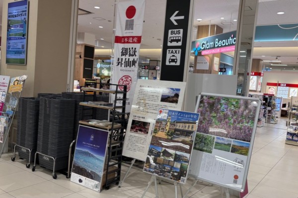 山梨県内の日本遺産を県民の方にも広く周知するために、イオンモール甲府昭和店の食品売り場付近にポスターやパンフレットを掲示した特設コーナーを設置しました。