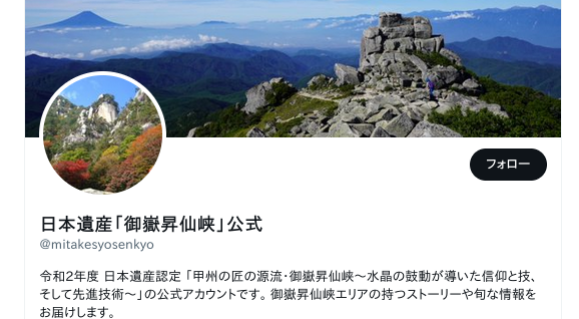 日本遺産「御嶽昇仙峡」公式Twitterを開設しました!!