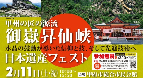甲州の匠の源流・御嶽昇仙峡 日本遺産フェスト開催します!!