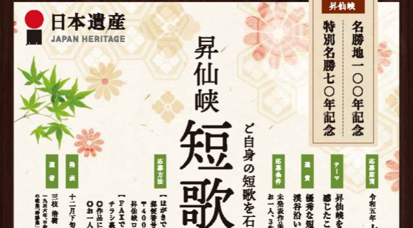 昇仙峡の「名勝100年」、「特別名勝70年」を記念して、昇仙峡の短歌コンテストを開催します。