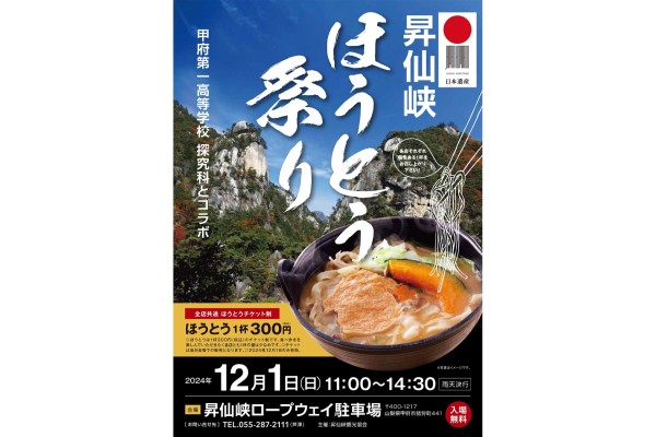 12月1日に甲府第一高校探求科とコラボして、昇仙峡ほうとう祭りを開催します。
