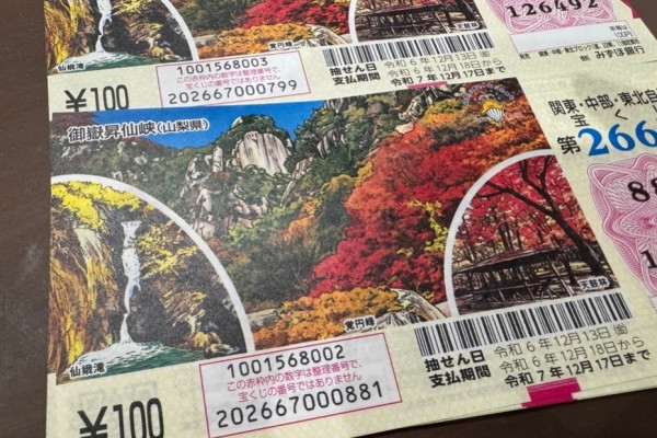 「御嶽昇仙峡」が宝くじのデザインに!!販売期間は12月10日までです。